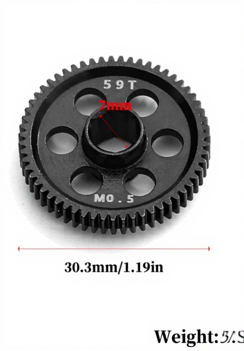 Le pignon mesure 14,99 x 14,99 x 1,02 cm et est fabriqué en acier de qualité 45#. Conçu pour un montage direct sans assemblage requis, il convient aux utilisateurs âgés de 14 ans et plus. Son module M0.5 et ses 59 dents offrent une compatibilité parfaite avec le modèle spécifié.