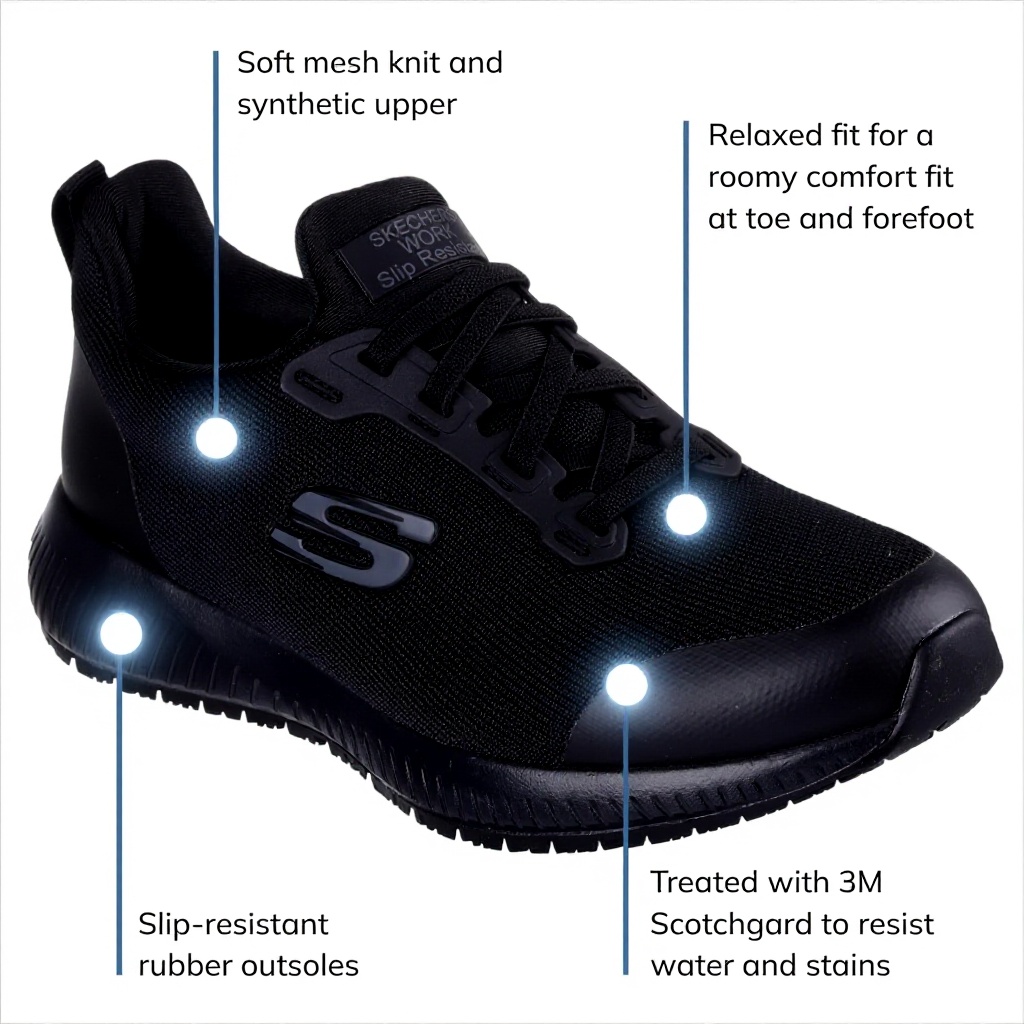 Disponibles en plusieurs tailles européennes allant du 35 au 42.5, ces baskets sont exclusivement proposées en couleur noire. Elles pèsent 1,36 kilogramme et mesurent 38,1 x 25,4 x 12,7 cm, avec un modèle référence 77222. Fabriquées par Skechers, elles sont conçues pour un usage masculin et combinent durabilité et style épuré.