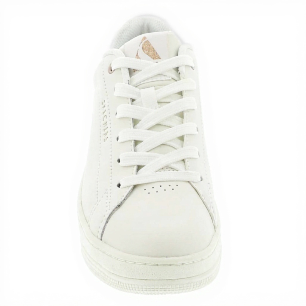 Ces baskets sont disponibles en tailles européennes allant du 35 au 41, avec des options en cuir blanc or rose et noir. Le matériau extérieur en simili-cuir et la semelle en caoutchouc garantissent durabilité et adhérence. Leur poids léger les rend idéales pour une utilisation prolongée.