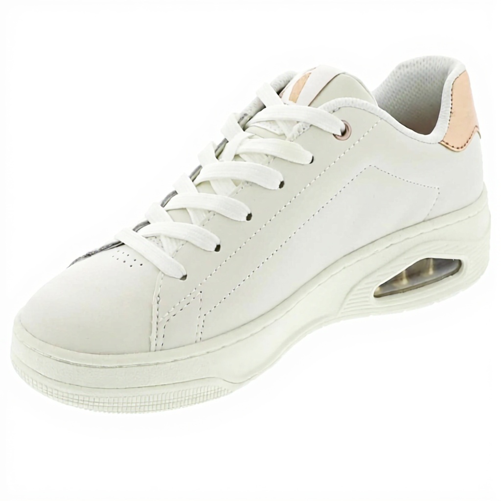 Les Skechers Uno Court se distinguent par leur design élégant combinant cuir blanc et accents or rose. Dotées d’une fermeture à lacets pour un ajustement personnalisé, elles offrent un confort remarquable grâce à leur intérieur en matériau synthétique et leur semelle extérieure en caoutchouc. Leur construction sans talon assure une marche naturelle et légère.