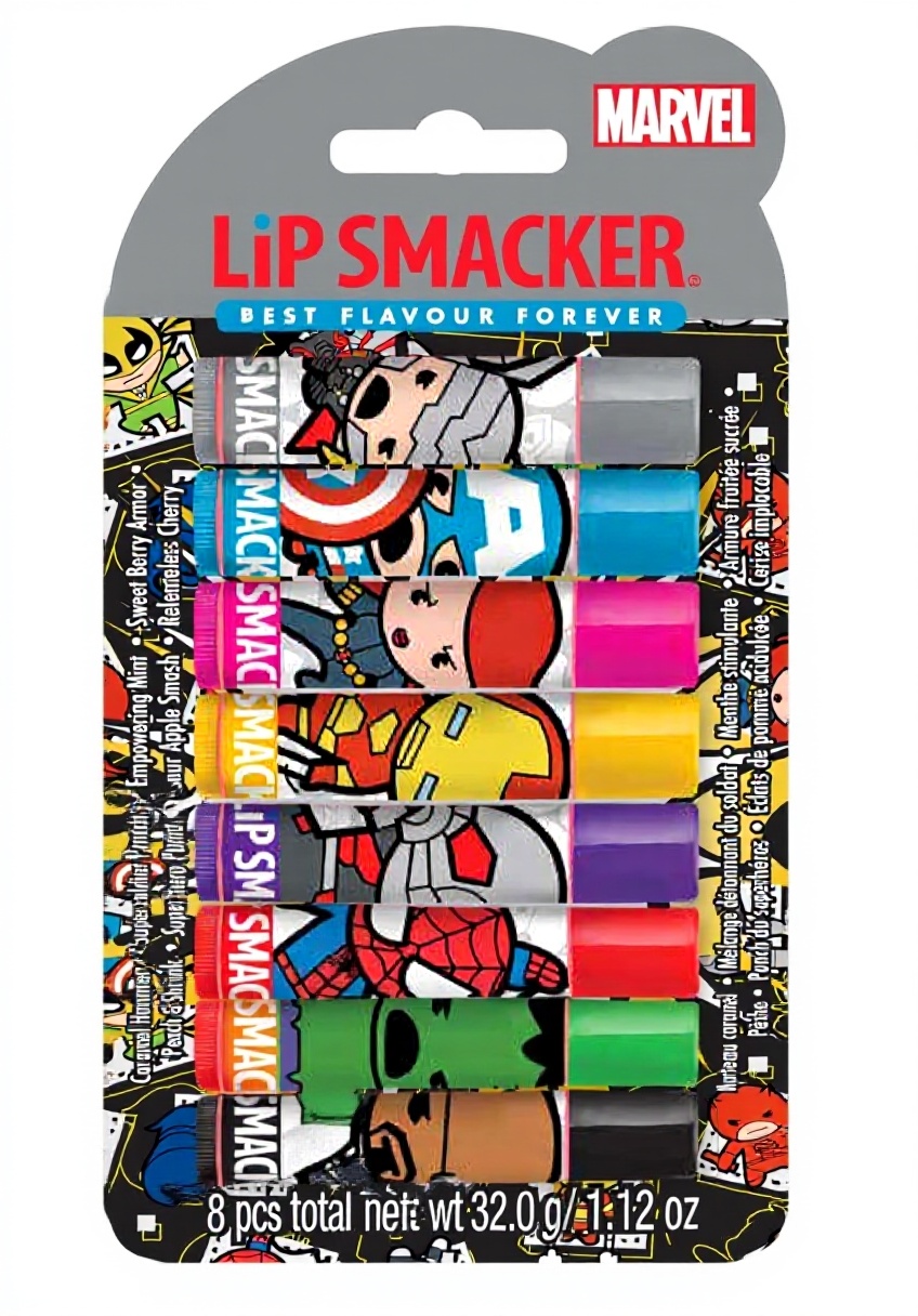 Cette collection exclusive Lip Smacker x Marvel propose 8 baumes à lèvres aromatisés inspirés des super-héros Avengers. Chaque baume est formulé pour hydrater et lisser les lèvres, avec des saveurs délicieuses et un design ludique incluant un porte-clés à collectionner. Les formules revitalisantes aident à prévenir les lèvres gercées tout en offrant une brillance douce.