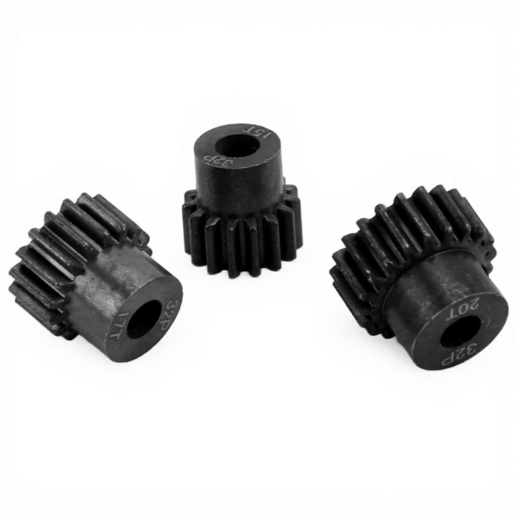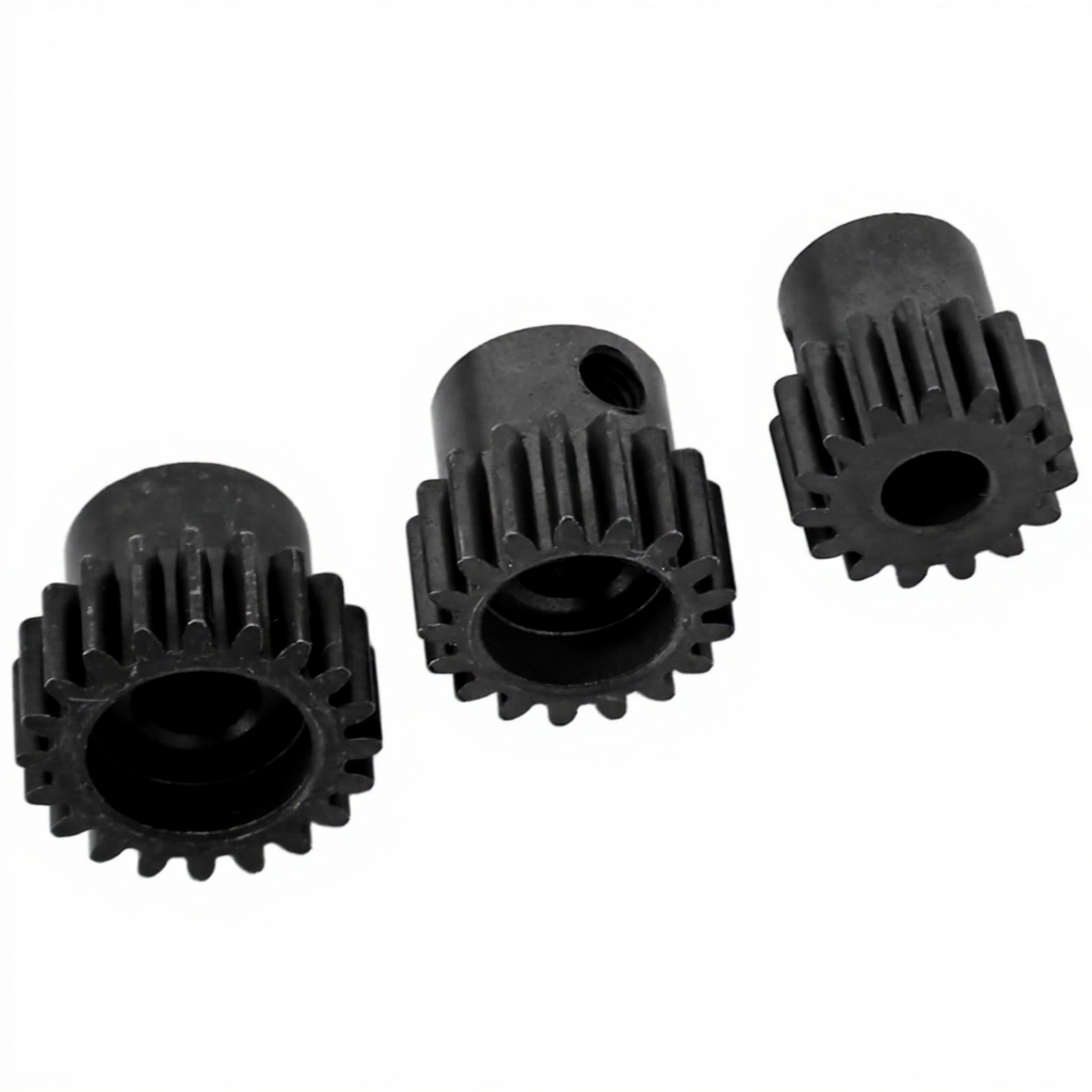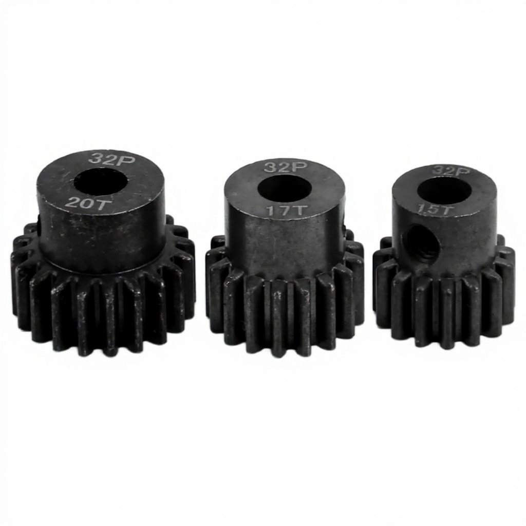 Les pignons de différentes dentures (15T, 17T, 20T) influencent la vitesse et le couple de la voiture RC ; choisissez en fonction de vos besoins de performance, par exemple un pignon plus petit pour plus de vitesse ou plus grand pour plus de couple.