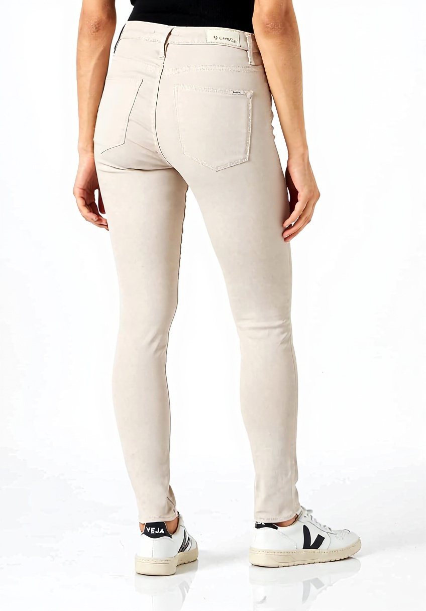 Ce modèle, numéro 244/30-2494, est disponible en tailles 32 et 38 avec une couleur chair. Le jean pèse léger et est adapté à un lavage en machine, garantissant un entretien simple. Les matériaux assurent une forme stable même après de multiples utilisations.
