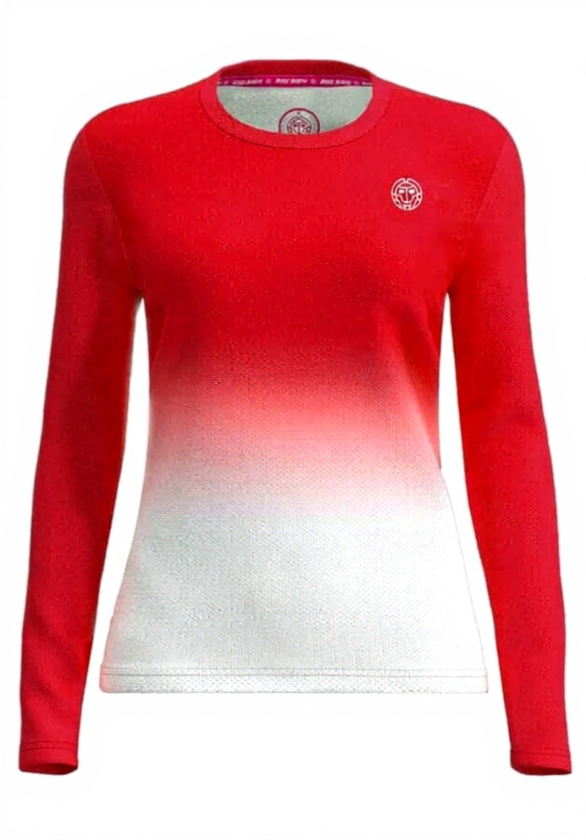 Ce haut manches longues BIDI BADU est conçu pour offrir confort et style aux jeunes filles. Fabriqué à partir de 92% de polyester recyclé et 8% d’élasthanne, il assure respirabilité et élasticité, idéal pour les mouvements actifs. Le design dégradé rouge et blanc apporte une esthétique moderne et dynamique.