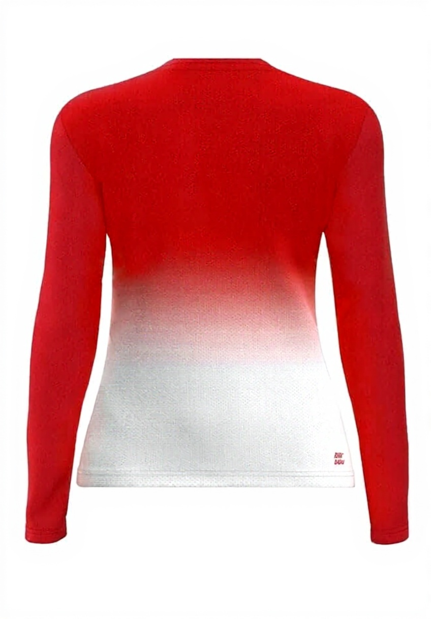 Ce haut manches longues BIDI BADU est conçu avec un mélange de 92% polyester recyclé et 8% élasthanne, offrant une respirabilité et une élasticité supérieures. Son design dégradé rouge et blanc ajoute une touche moderne, tandis que les manches longues assurent une couverture optimale pour les activités sportives.