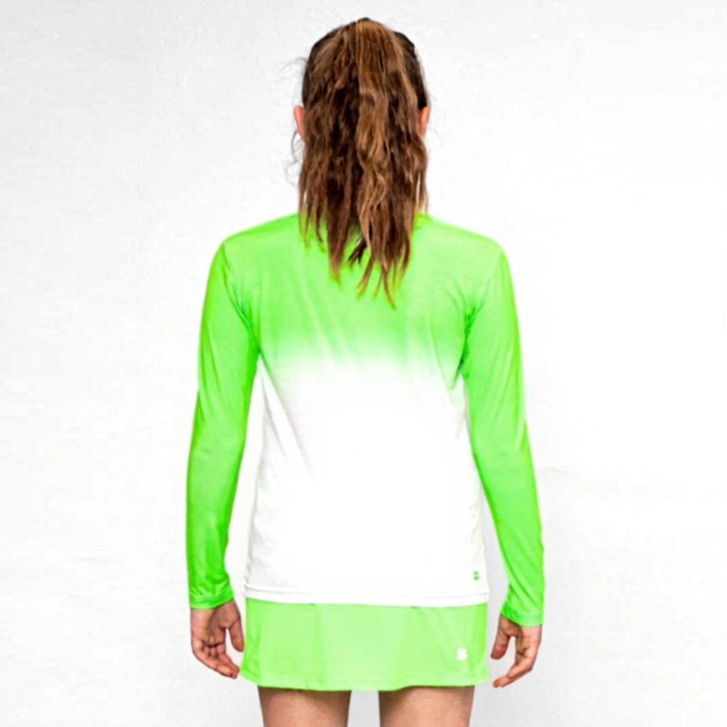 Ce haut manches longues de la marque BIDI BADU est conçu pour les filles, avec un dégradé de couleur vert fluo qui ajoute du dynamisme à sa silhouette. Fabriqué à partir de 92% de polyester recyclé et 8% d’élasthanne, il offre une respirabilité et une élasticité optimale, adaptées aux mouvements intenses. Idéal pour les activités sportives comme le tennis, il combine style et fonctionnalité dans un vêtement léger et résistant.
