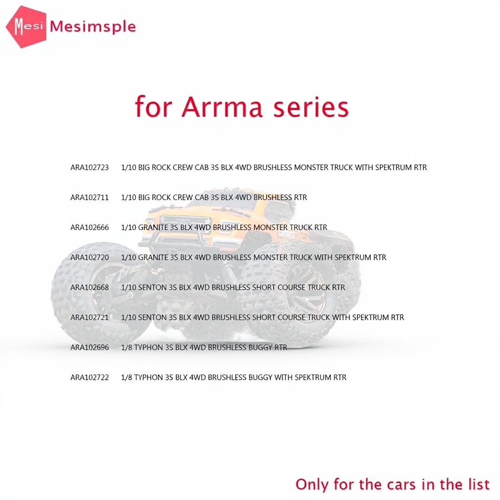 - Compatibilité précise avec les modèles Arrma 1/10 et 1/8