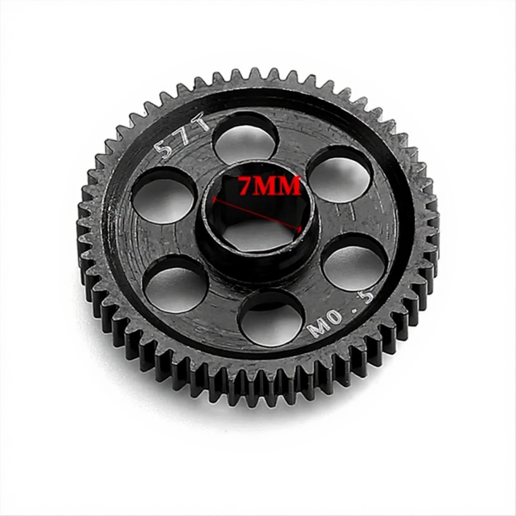 Le pignon différentiel présente un module M0.5 avec des options de 57 et 59 dents, un poids de 180 grammes et des dimensions compactes de 2,54 cm. Fabriqué en métal avec une finition brushed, il s’adapte parfaitement aux modèles compatibles pour un montage sans modifications supplémentaires.
