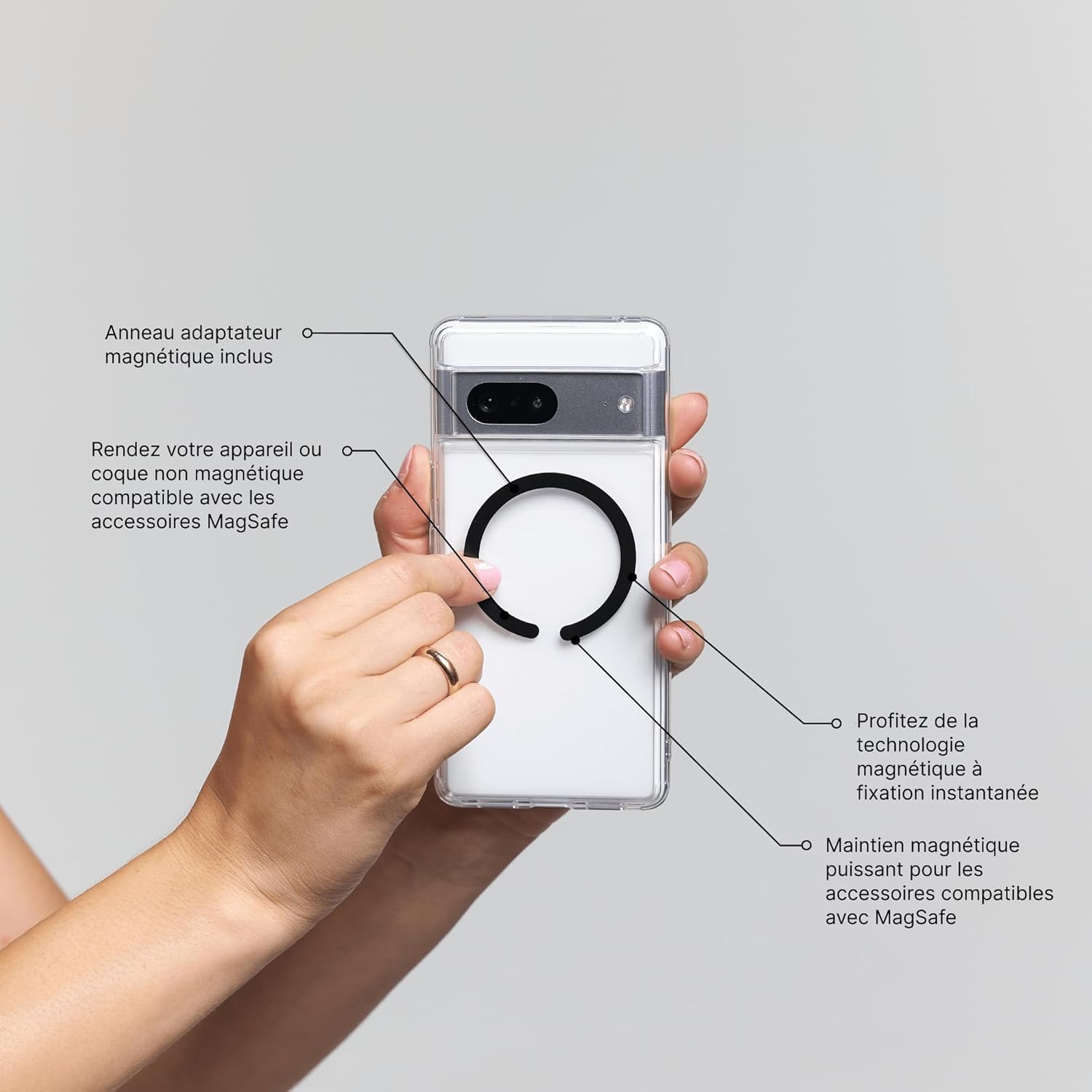 - Anneau adaptateur inclus pour rendre toute coque compatible MagSafe