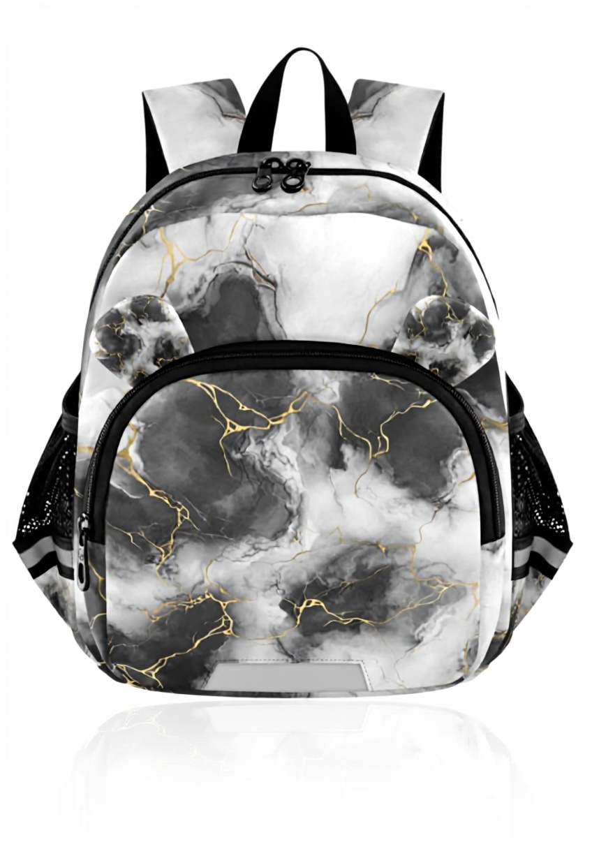 Ce sac à dos élégant arbore un design granit marbre blanc et noir qui séduira les enfants. Fabriqué en polyester résistant à la déchirure, il offre une durabilité exceptionnelle. Les bretelles larges réglables et le dos rembourré assurent un confort optimal lors du port, tandis que la ceinture pectorale stabilise la charge pendant les déplacements.