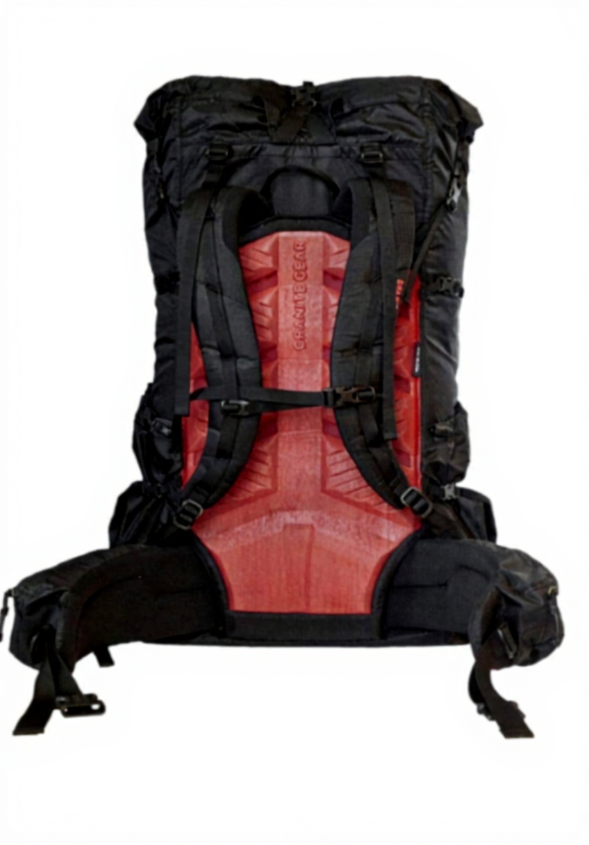 Ce modèle mesure 68,58 x 35,56 x 17,78 cm et pèse 2,14 kg, avec une capacité de 60 litres. Il est disponible en couleur noir/rouge roche et adapté aux torsos courts, offrant un ajustement précis pour une répartition optimale du poids.