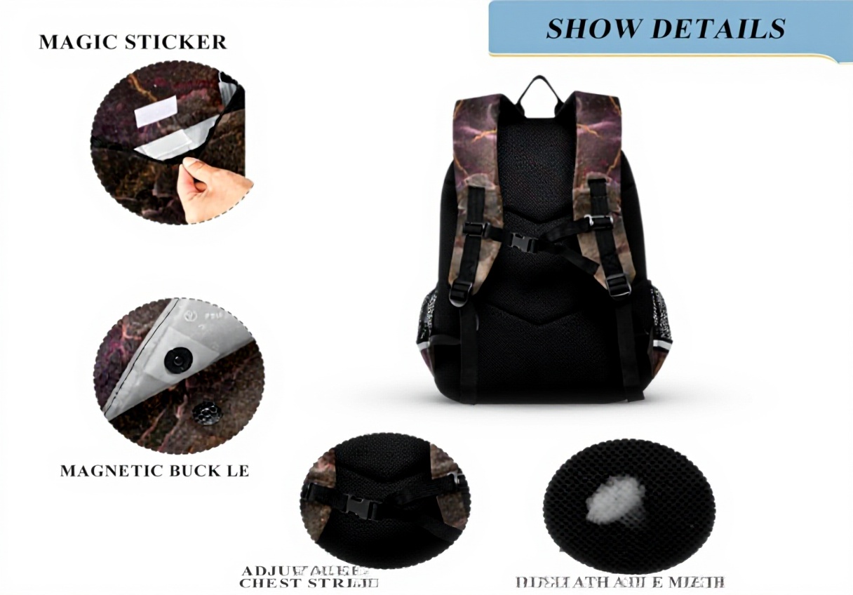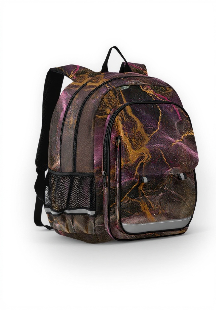 Ce sac à dos combine élégance et fonctionnalité avec son design unique en peinture cuivre marbre granit. Fabriqué en tissu de titane de haute qualité, il résiste aux froissements et à l’usure quotidienne. Les bandes réfléchissantes intégrées assurent une visibilité accrue pour plus de sécurité.