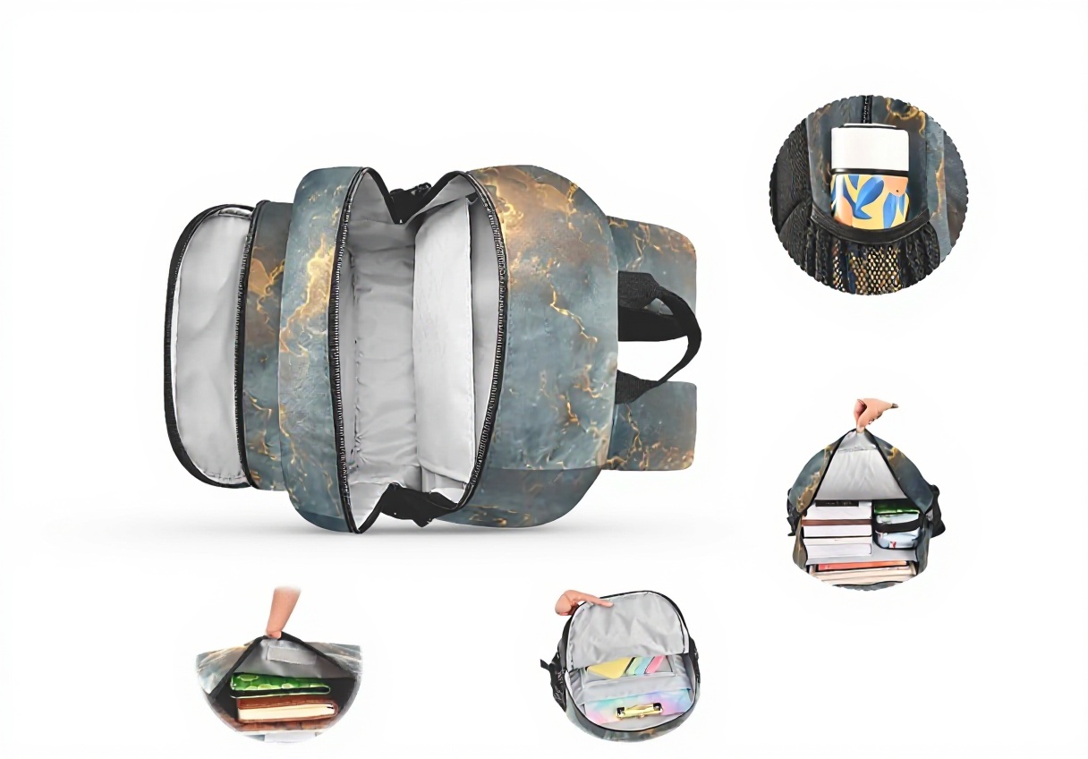 Ce sac à dos Sawoinoa se distingue par son design unique aux motifs marbre granit cuivre métallique et son tissu de titane haute résistance. Les bandes réfléchissantes intégrées assurent une visibilité accrue pour la sécurité des enfants. La construction durable résiste aux froissements et à l’usure quotidienne.
