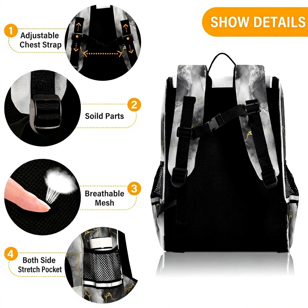 Sac à Dos Enfant Granit Marbre Blanc Noir Réfléchissant