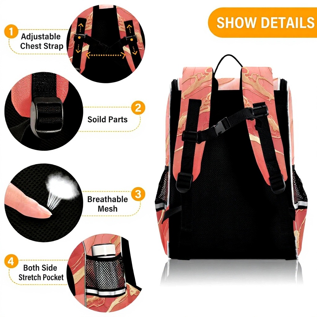 Ce sac à dos enfant Sawoinoa se distingue par son design unique au motif granit marbre rose et sa construction en tissu de titane durable. Le matériau offre une excellente résistance aux rides et à l’usure, garantissant une longue durée de vie. La fermeture métallique bidirectionnelle et les multiples compartiments organisent parfaitement vos affaires.