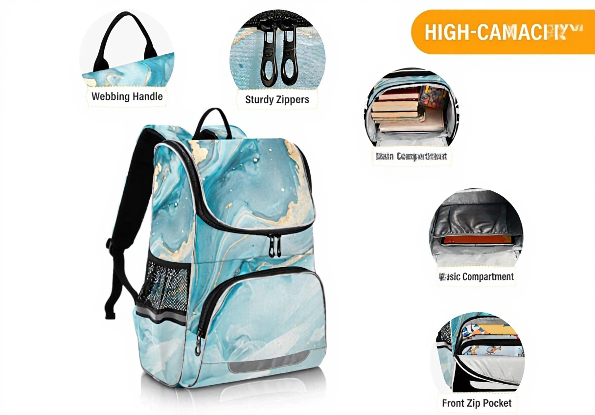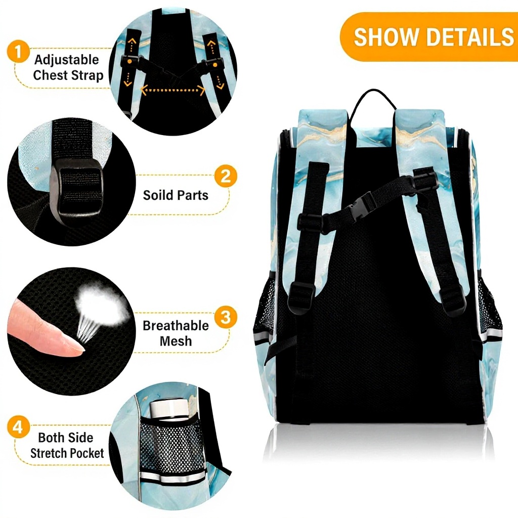 Ce sac à dos sawoinoa se distingue par son design unique marbre turquoise granit qui allie esthétique moderne et fonctionnalité. Fabriqué en tissu de titane durable, il offre une excellente résistance aux froissements et à l’usure, garantissant une longue durée de vie. Les bandes réfléchissantes intégrées assurent une visibilité optimale pour la sécurité de l’enfant.