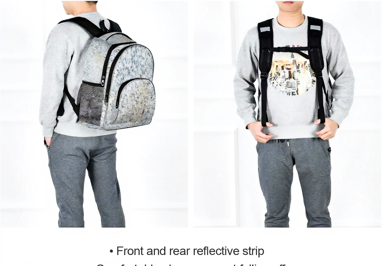 Dimensions : 32 x 17 x 45 cm, adapté aux ordinateurs portables jusqu’à 15,6 pouces. Fabriqué en polyester durable, il utilise une impression 3D avancée pour des motifs clairs et durables. Le sac pèse léger pour un transport aisé au quotidien.