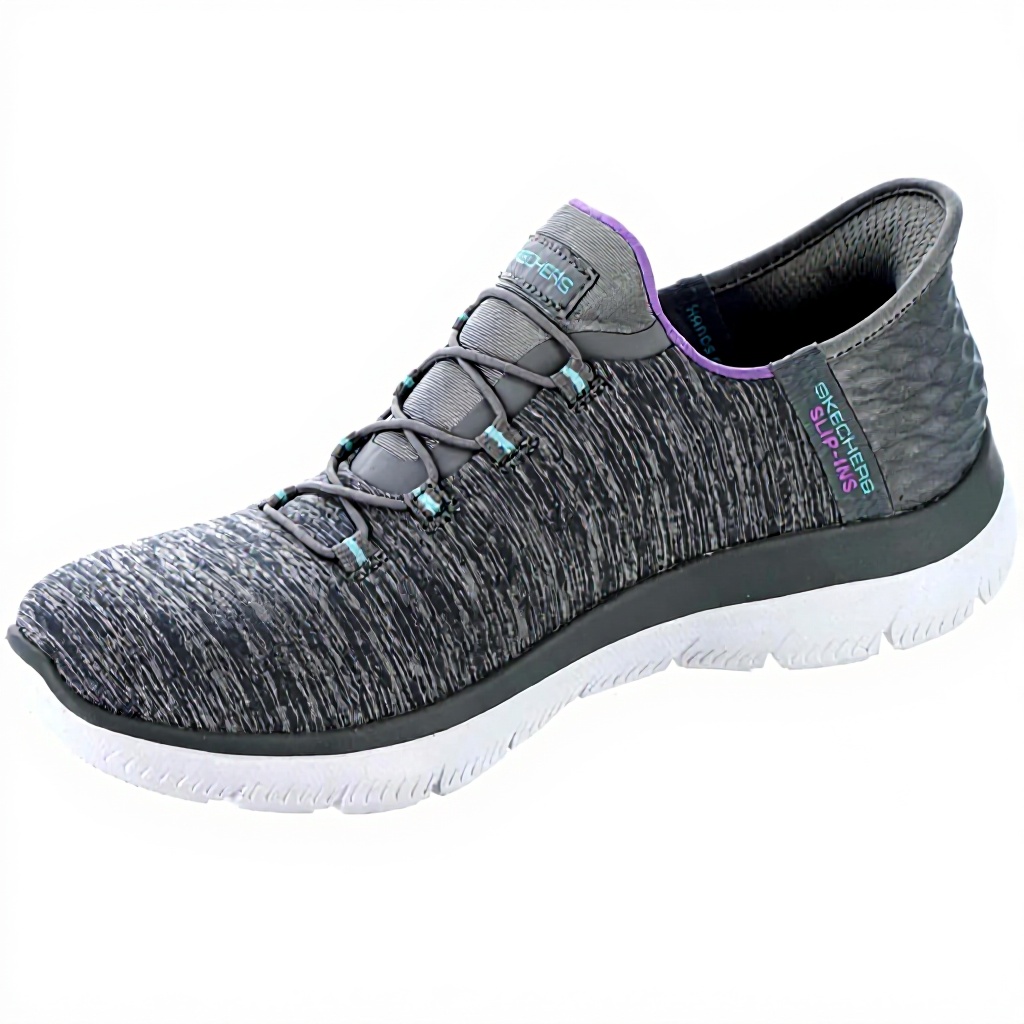 Les Skechers Summits Dazzling Haze sont conçues pour offrir un confort exceptionnel grâce à leur semelle intérieure en mousse à mémoire de forme refroidie par air. La tige en jersey doux chiné avec lacets élastiques fixes assure un ajustement facile et un maintien sécurisé, tandis que le coussinet de talon exclusif maintient le pied en place.