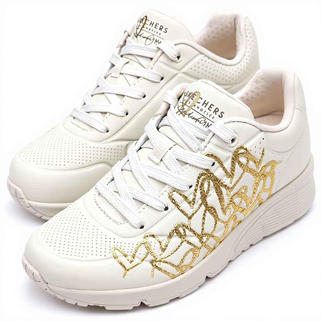Les baskets Skechers Uno Golden Heart sont conçues pour offrir un équilibre parfait entre confort et style. Fabriquées avec des matériaux de qualité comme le Durabuck et des finitions en Mylar doré, elles assurent une durabilité et une élégance au quotidien. Leur semelle souple et leur design ergonomique les rendent adaptées à une utilisation prolongée.