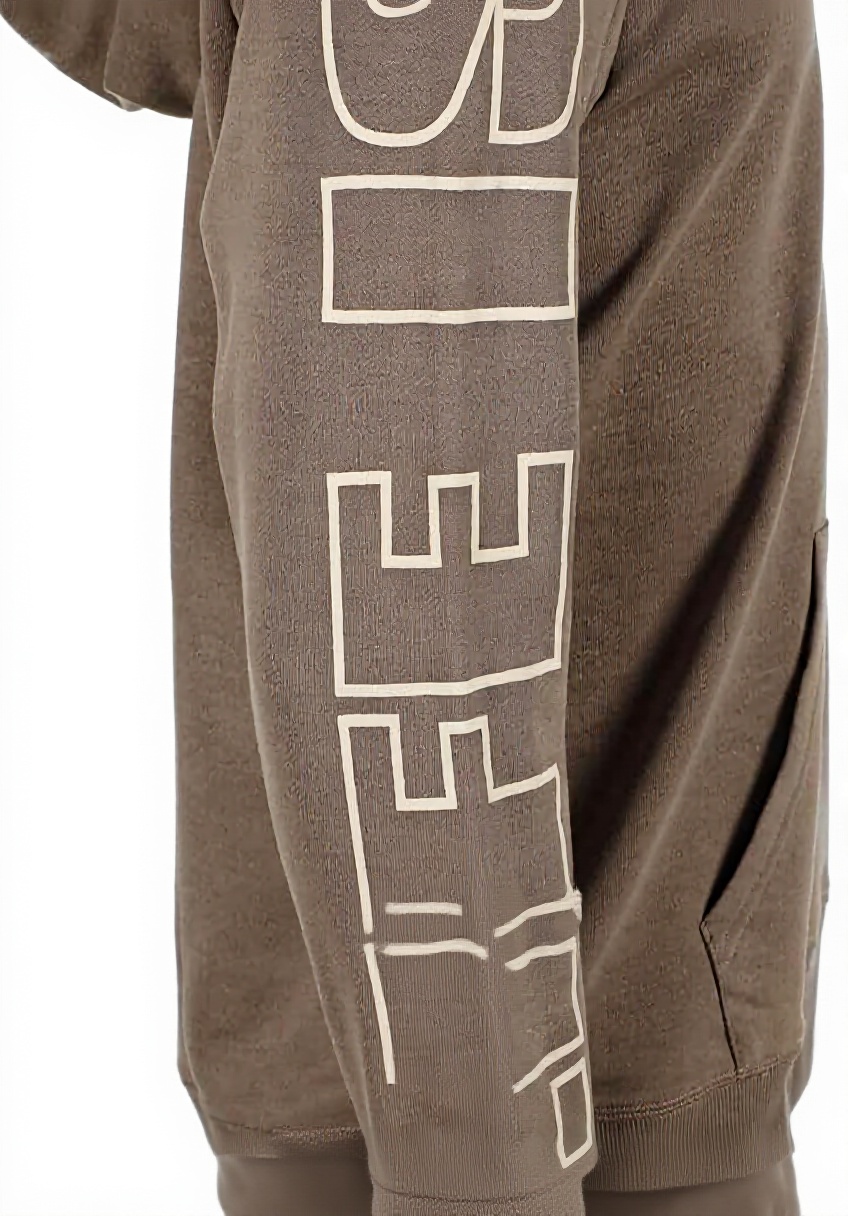 Le sweat est composé de 65% polyester et 35% coton, offrant un équilibre entre respirabilité et résistance.