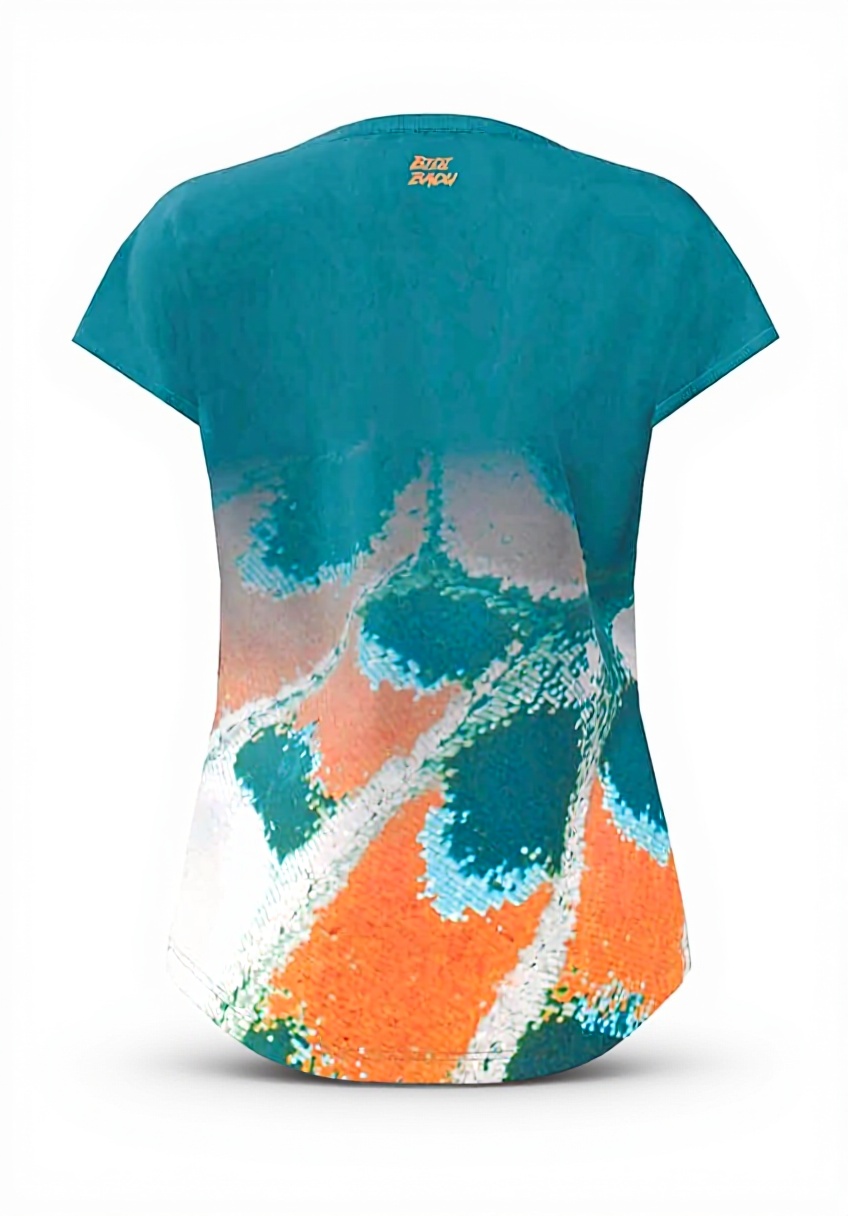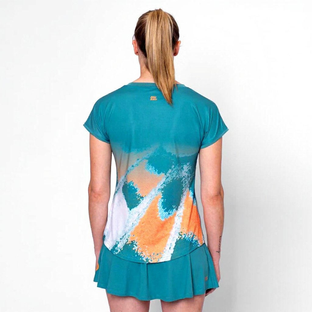 Ce T-shirt BIDI BADU allie style et performance avec un design capsleeve et des couleurs vibrantes Bleu Petrol et Orange. Fabriqué en 90% polyester et 10% élasthanne, il offre une respirabilité et une élasticité supérieures pour un maintien confortable pendant l’effort.
