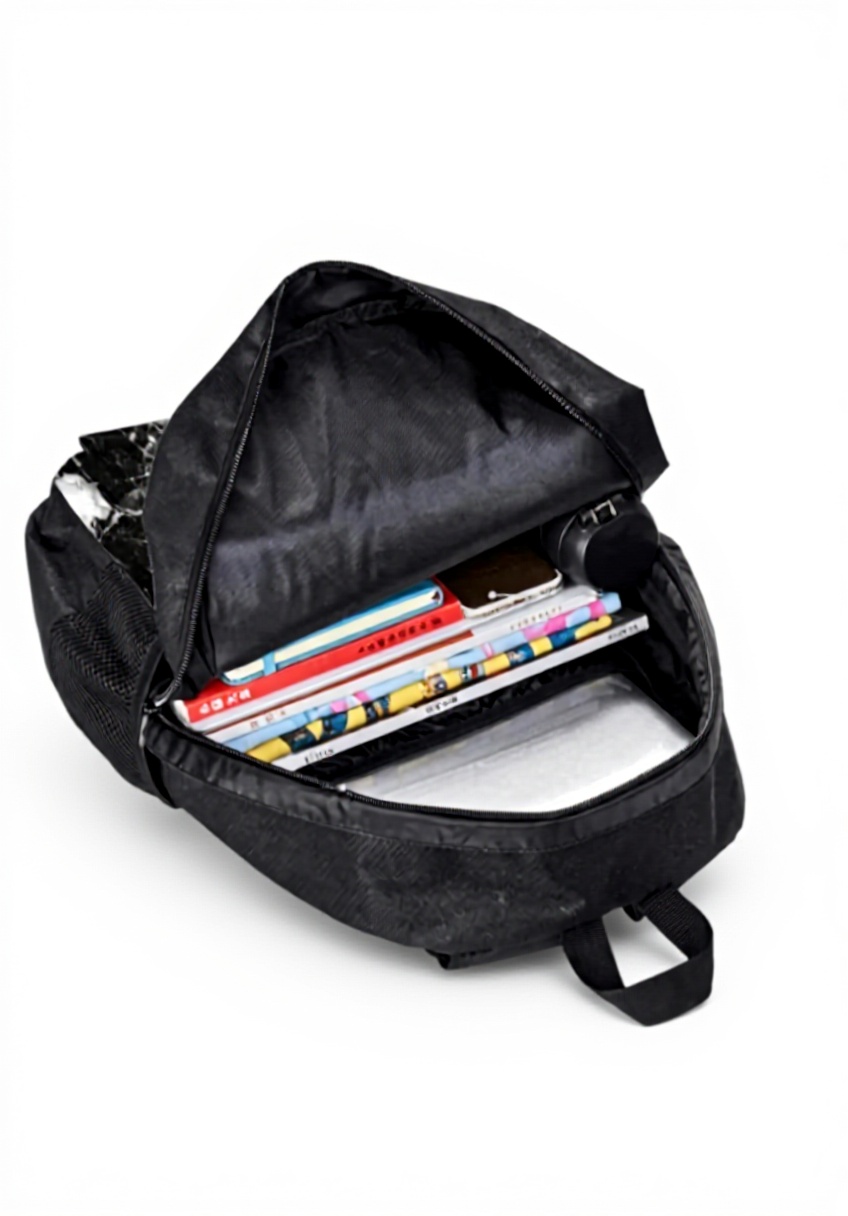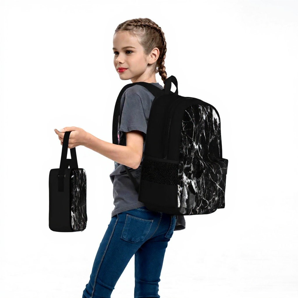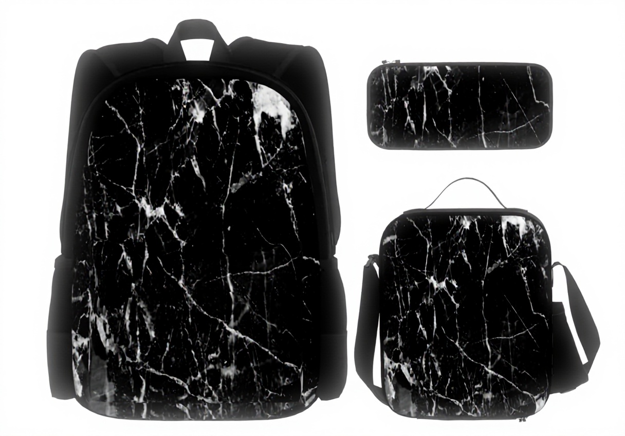 Cette trousse se distingue par son design unique inspiré des motifs marbre et pierre granit, avec une impression pleine largeur qui couvre toute la surface. La face extérieure est en cuir grainé (PVC) offrant une texture agréable au toucher, tandis que l’intérieur est entièrement en polyester pour une durabilité optimale. La fermeture éclair de qualité assure une ouverture et fermeture fluides.