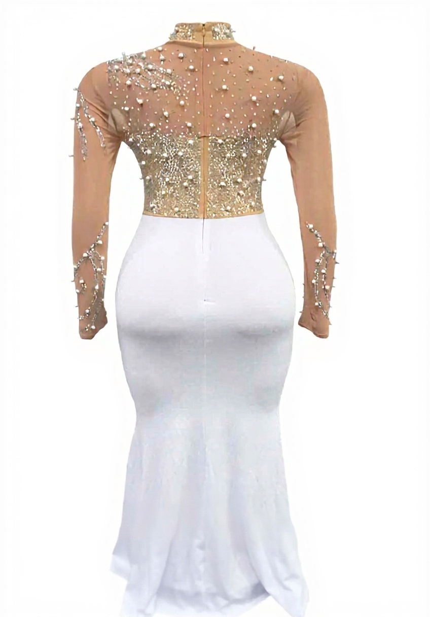 Disponible en tailles S, M, L, XL et XXL, ainsi qu’en couleurs noir et blanc, cette robe est fabriquée en maille résistante pour un entretien facile. Son design uni et sa finition strass en font un modèle polyvalent et durable.