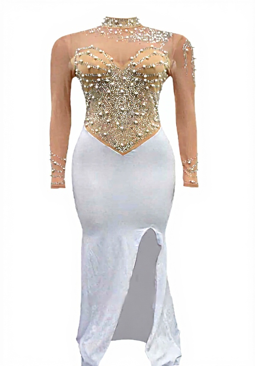 Cette robe longue WVONIF se distingue par son tissu en maille douce et sa fente décorée de strass, offrant une allure sophistiquée. Conçue pour les occasions spéciales, elle allie confort et style avec une coupe flatteuse qui met en valeur la silhouette.